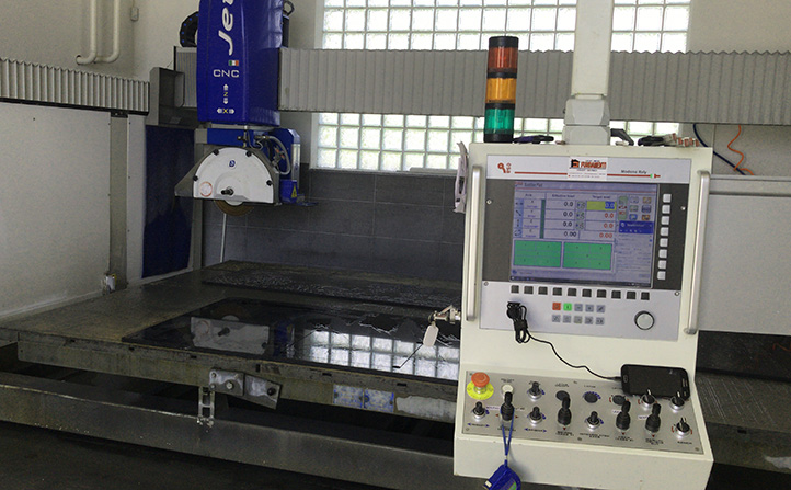 Unser moderner Maschinenpark besteht aus zahlreichen CNC-Sägen, Brückensägen, Wandarmschleifmaschinen und Kantenschleifmaschinen. In unserem CNC-Bearbeitungszentrum halten wir außerdem mehrere individuelle Schleifplätze vor, an denen in Handarbeit besondere Stücke bearbeitet werden.